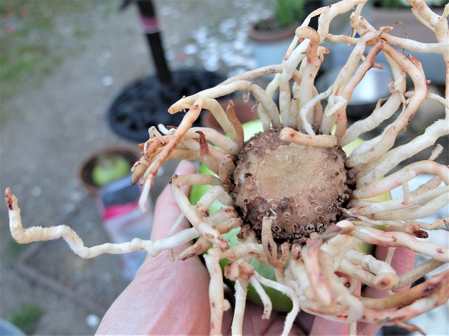 芽が出始めたばかりで、そんなことが有るのかとびっくりしたけど、鉢から抜いてみたらやっぱり腐ってたんですよ。
