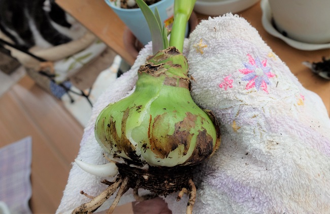 水遣りしなくても球根内の水分があるから大丈夫。
