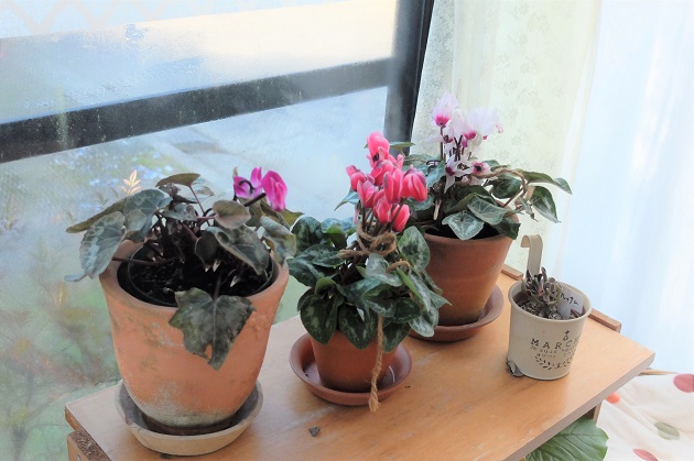 寒すぎるのでガーデンシクラメンをサンルームに入れました。