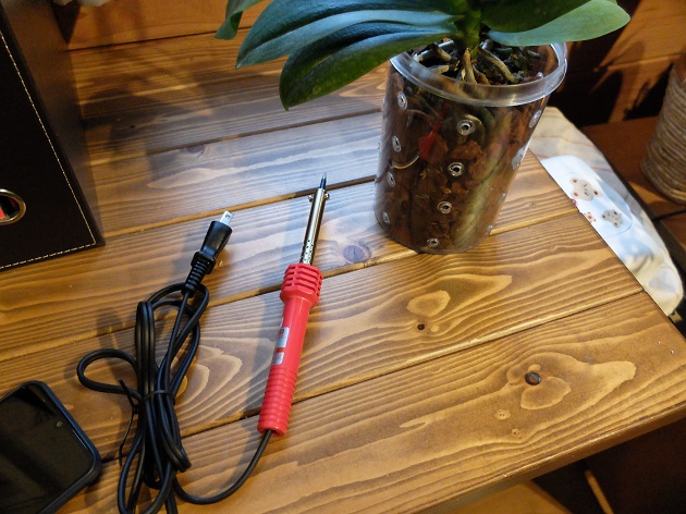 ユーチューブで見た、半田ごてでプラスチックの入れ物に穴をあけてる方法が良さそうなのでやってみました。