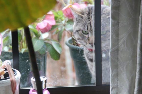 ご近所の猫さんが最近よく来てまして、いつも窓から覗いてます