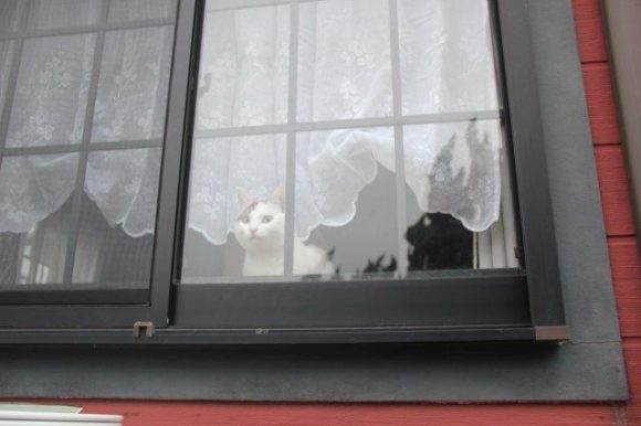 ウォーキングから帰って、こうやってそろりそろりと窓の外から近づいても絶対飼主だってわかってないと思う。